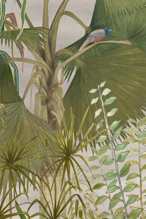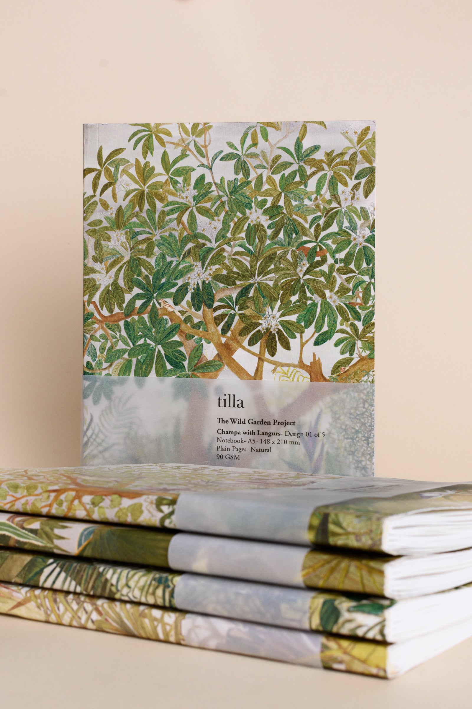 The large-scale artworks were hand-coloured using a variety of media from water colour to pencils, with the addition of birds, animals and more plants to this fantasy garden. These are now available as wallpaper, art prints, notebooks, greeting cards, and home textiles.
